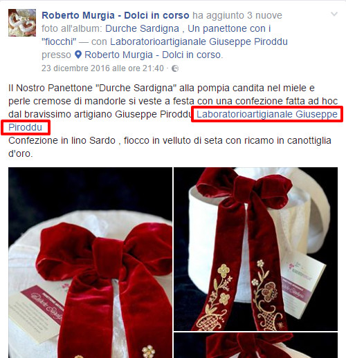 Questo è l’account Facebook di Roberto Murgia, maestro pasticcere titolare del Laboratorio artigianale di pasticceria tradizionale Sarda “Dolci in Corso“.