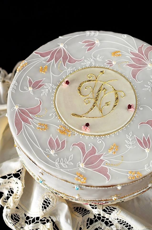 In basso: Torta di mandorle decorata a mano da Roberto Murgia